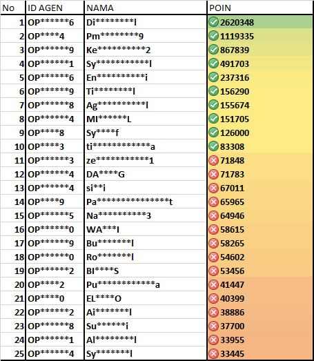 Berdasarkan rekap jumlah poin transaksi selama periode tersebut, hadiah telah kami kirimkan langsung ke saldo masing-masing akun pemenang. Kami mengucapkan selamat dan terima kasih atas partisipasi semua peserta yang telah ikut memeriahkan event BULAN. Tanpa semangat dan antusiasme Anda, event ini tentu tidak akan berjalan dengan sukses.